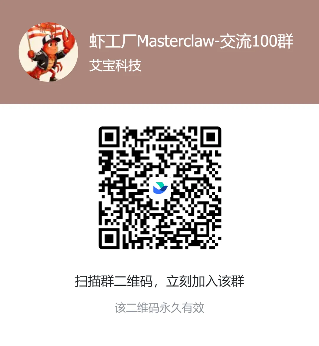 虾工厂Masterclaw 邀请你加入飞书群,快点击参观虾工厂加入吧!