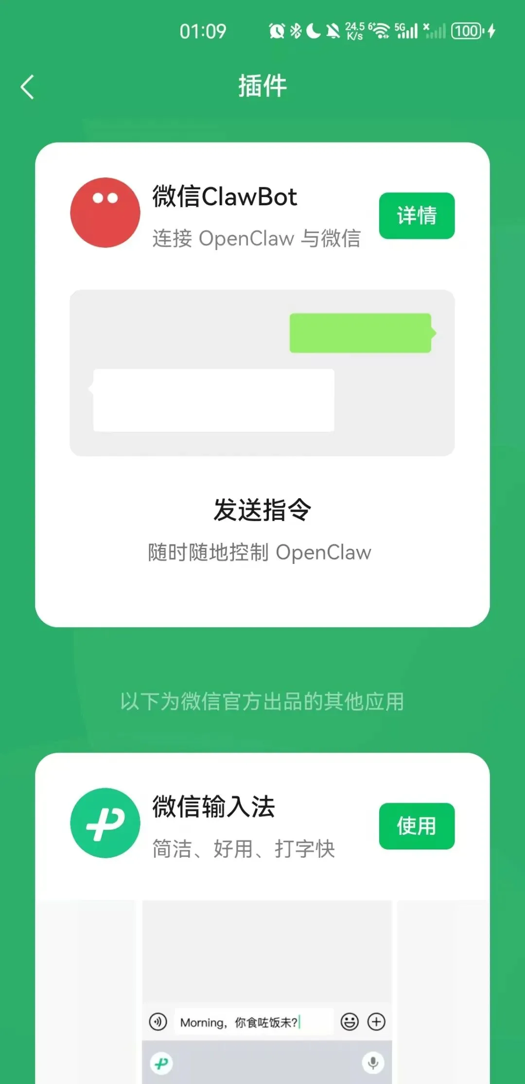 如果能看到 ClawBot 的入口,说明你已经被灰度到了,可以直接往下走。