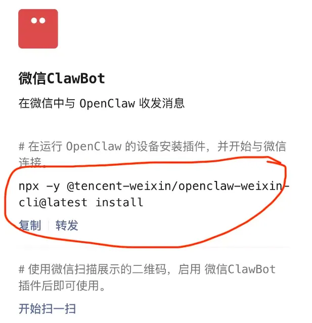 npx -y @tencent-weixin/openclaw-weixin-cli@latest install