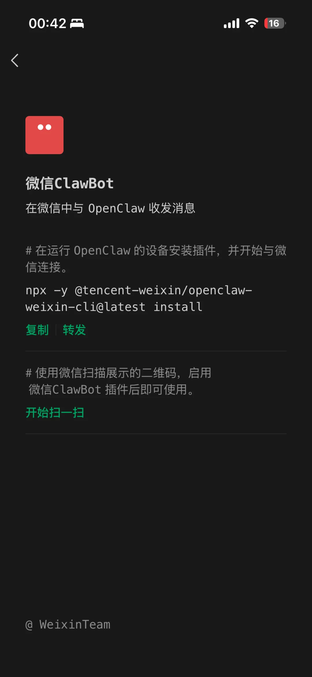 白天看到微信官方支持 openclaw 🦞 插件的文章,晚上我的微信就支持了这个功能。 下面介绍下如何操作: