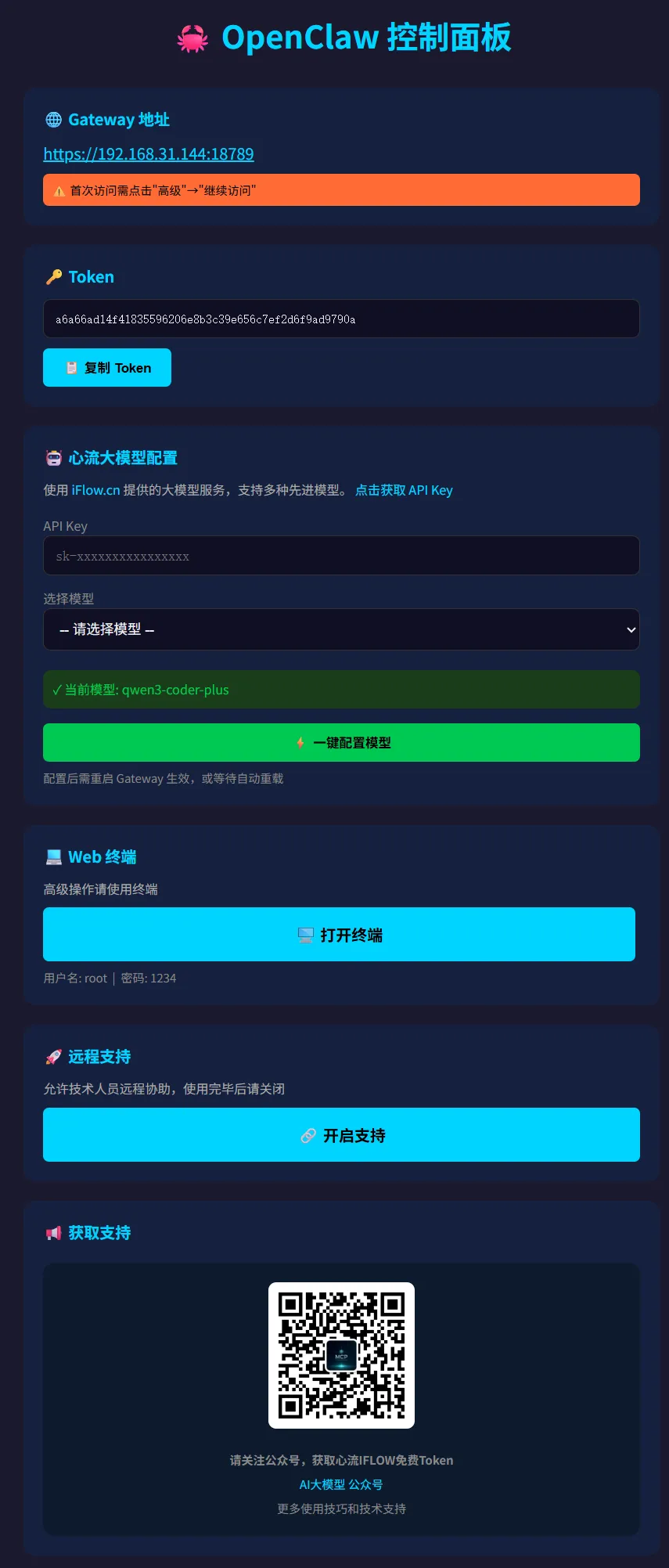 根据用户的反馈,我们更新了OpenClaw 控制面板完整使用指南,新版包含心流大模型配置、远程支持等全新功能
