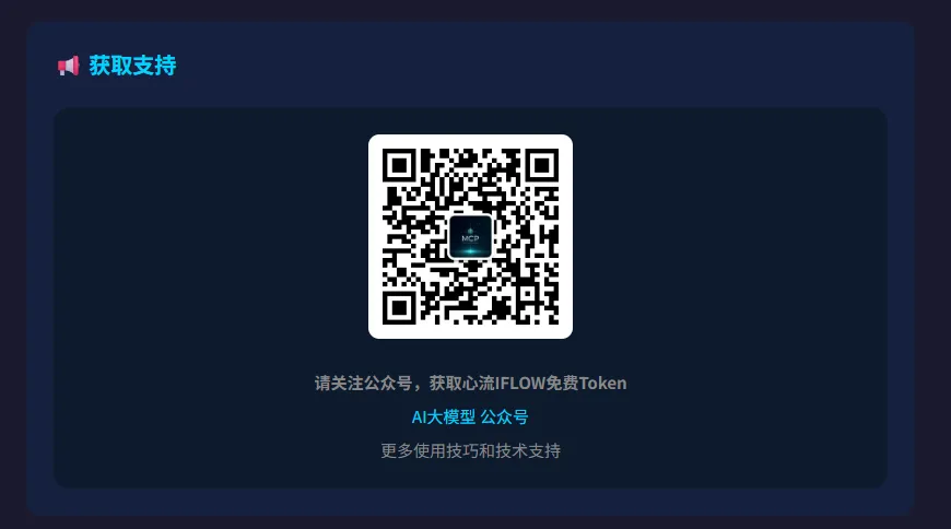 关注公众号「AI大模型」 在控制面板底部扫描二维码 按提示获取免费 Token