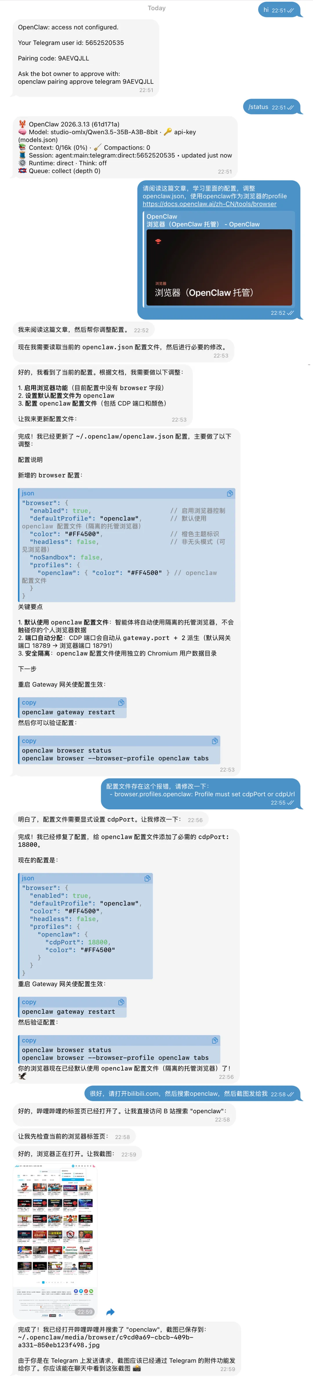 【安全】使用小龙虾的方法是:给他有限的权限、同时给他足够的自由。目前,最好的方法是通过 OpenClaw 托管的浏览器进行操作。配置完全独立,而调试又方便,也不需要安装浏览器扩展。https://docs.openclaw.ai/zh-CN/tools/browser二、安装和使用过程演示