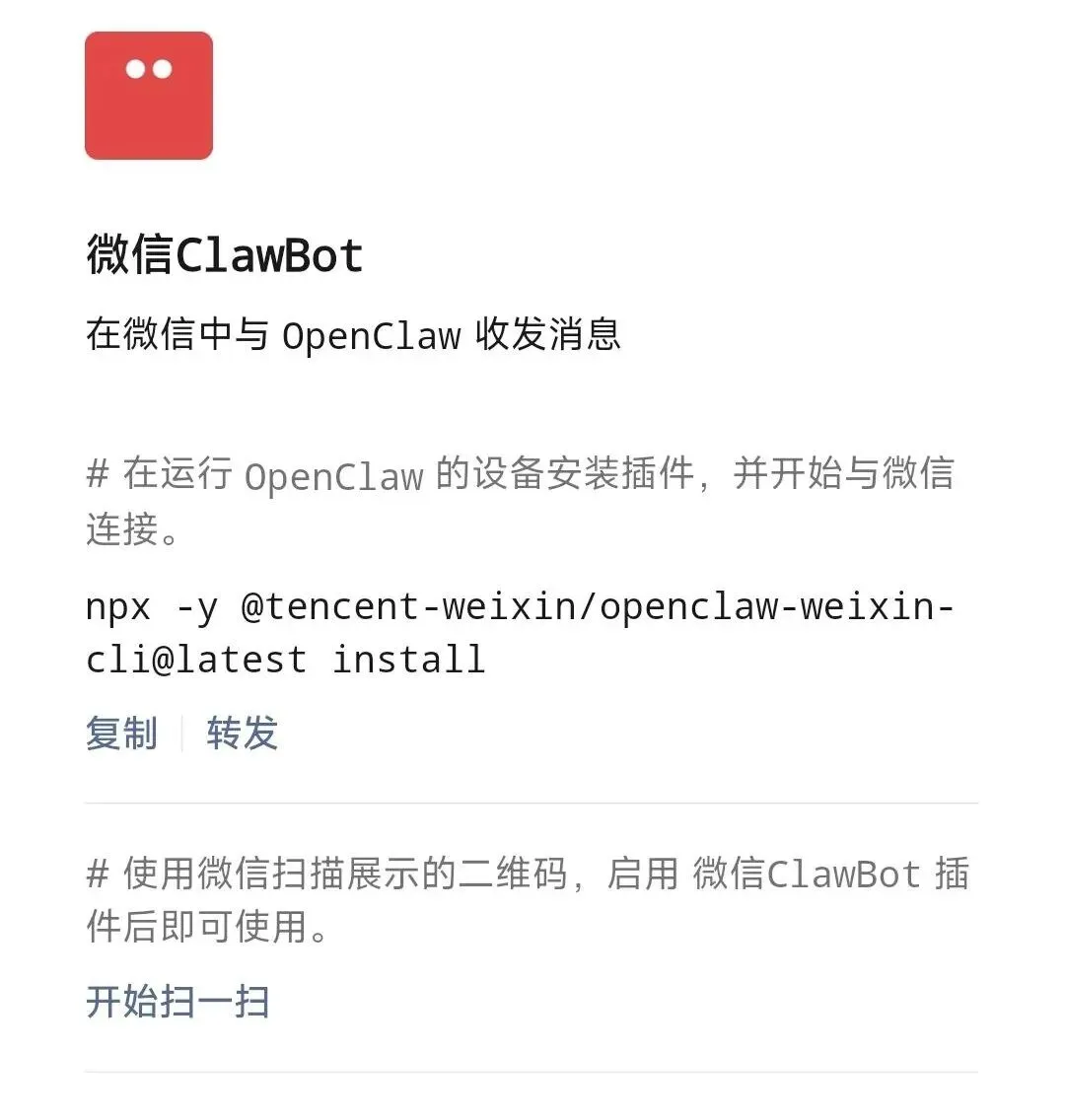 本次微信接入OpenClaw最大的亮点就是简单。官方号称“两步完成”,甚至不需要复杂的代码配置。