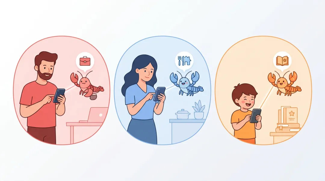 MEMORY.md 的共享我觉得反而是好事。全家人共同养一只虾,它越来越了解每个家庭成员,记住每个人的偏好和习惯,慢慢就成了真正的"家庭管家"。