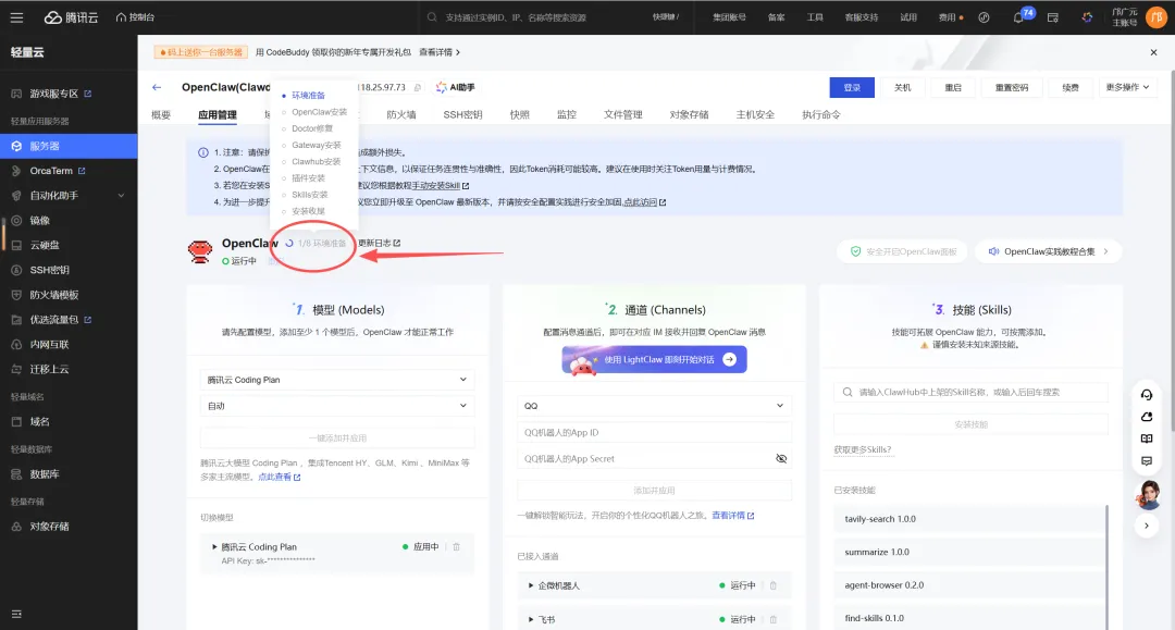 大多数人跑 OpenClaw 都是挂在云服务器上的,所以先从这个场景开始讲。下面以腾讯云为例,其他服务商操作思路一样。