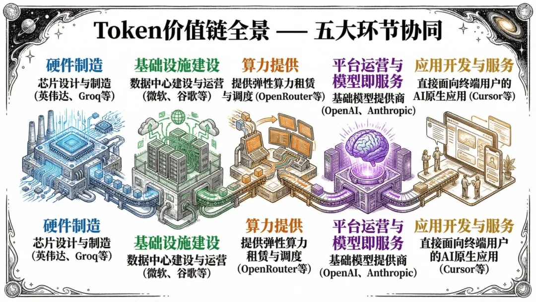 报告指出行业发展的关键支撑与未来挑战,技术层面硬件创新、软件优化与开源生态推动推理成本大幅下降,企业端形成 SaaS、API、AI 工厂三种 Token 消费模式,每瓦 Token 吞吐量成为核心竞争力指标;同时行业面临资本、技术、生态三重进入壁垒,企业竞争陷入价格战与逆向选择困境。未来,全球算力政治经济学博弈将持续升级,主权 AI 战略成为各国布局重点,中国算力产业将在国产替代、先进工艺突破上持续发力,而 AI 算力 Token 经济也将推动企业组织架构、劳动激励机制变革,Token 不仅是生产资料,更成为人力资本配置的关键变量,行业需在技术创新、产业政策、社会保障与国际合作中寻求平衡。整体来看,AI 算力 Token 经济已重构全产业链逻辑,算力资源的全球争夺将愈发激烈,技术突破与生态构建成为行业发展核心命题,而如何解决劳动力市场分化、产出与收入脱钩等问题,将成为产业可持续发展的关键。