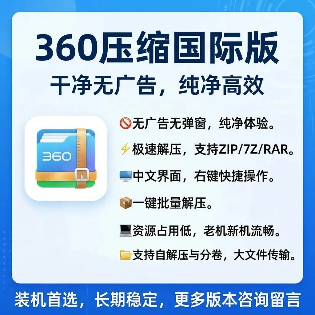 作为一款压缩解压工具,360压缩国际版在功能落地与使用体验上,表现均优于国内版本。其一,用户在使用该版本过程中几乎不会受到广告弹窗干扰,大幅提升了使用感受;其二,相较于国内版,国际版采用了更为扁平化的操作界面设计。