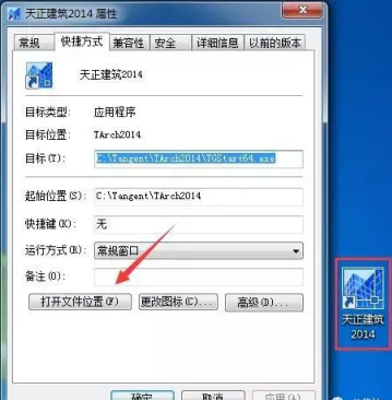 10.选中桌面天正建筑2014软件,右键属性,打开文件位置。