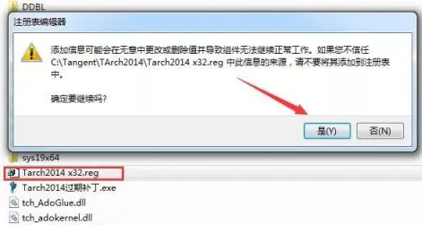 15.双击打开tarch2014 X32.reg注册信息,点击是。
