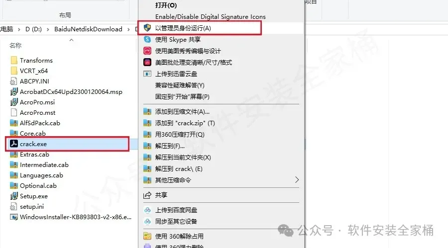 Office软件冲突: 安装前关闭Word、Excel等Office软件。 若Word无Acrobat选项卡,检查COM加载项是否启用。