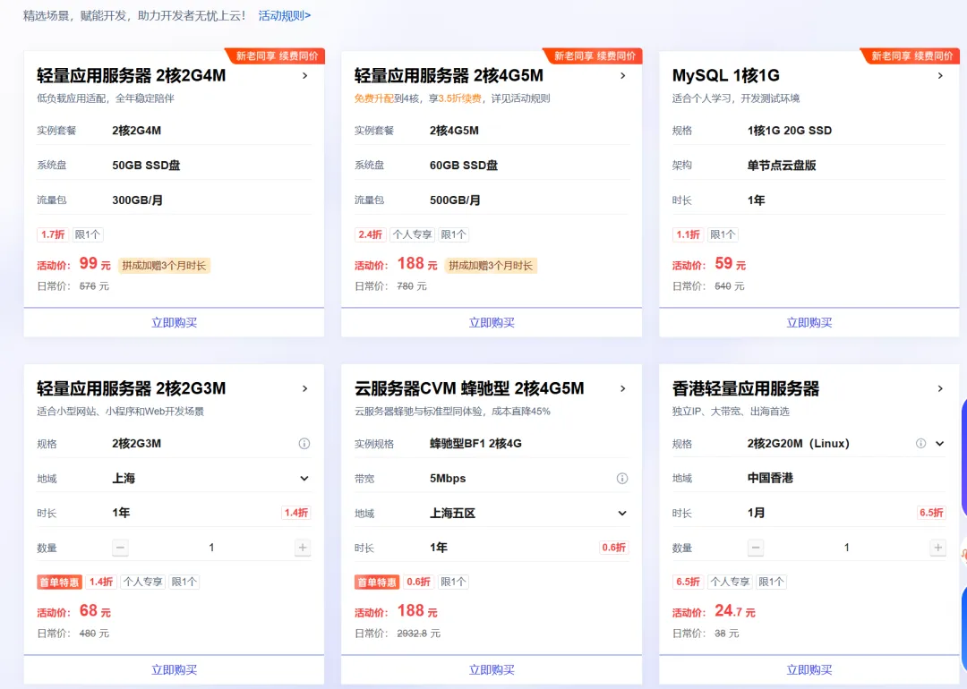 • 有免费额度,然后再40元充值可以用很久,每天早上也有7.9元/月的抢购,这就是要拼手速的时候了。