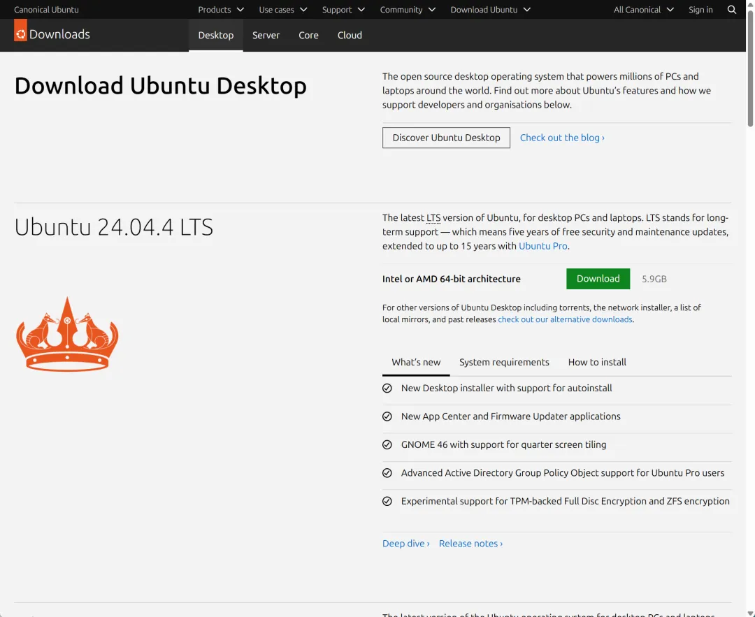 点击「Download Ubuntu 22.04 LTS」按钮,下载约4.5GB的ISO文件。