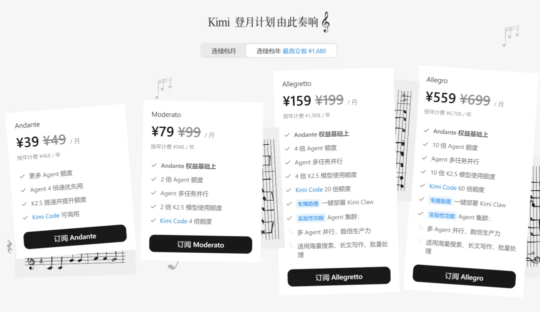 KIMI(468元/年)地址:https://www.kimi.com/code/支持 Kimi K2.5 等国产优质模型