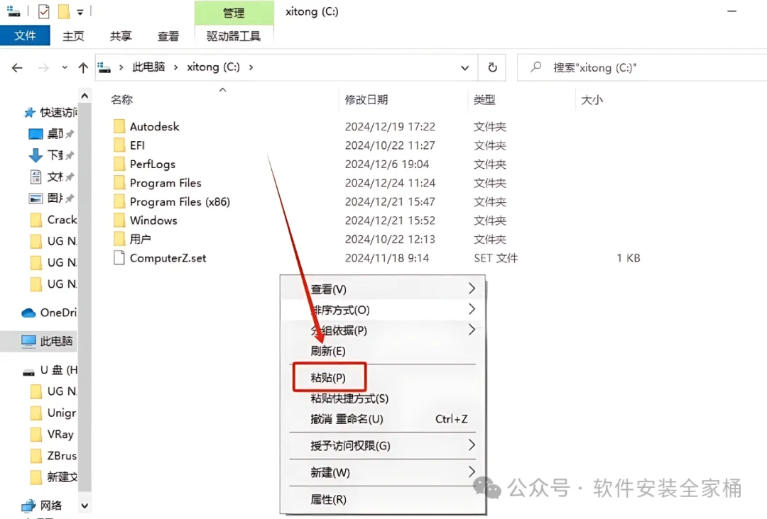 6.在C盘中粘贴刚才复制的文件夹。