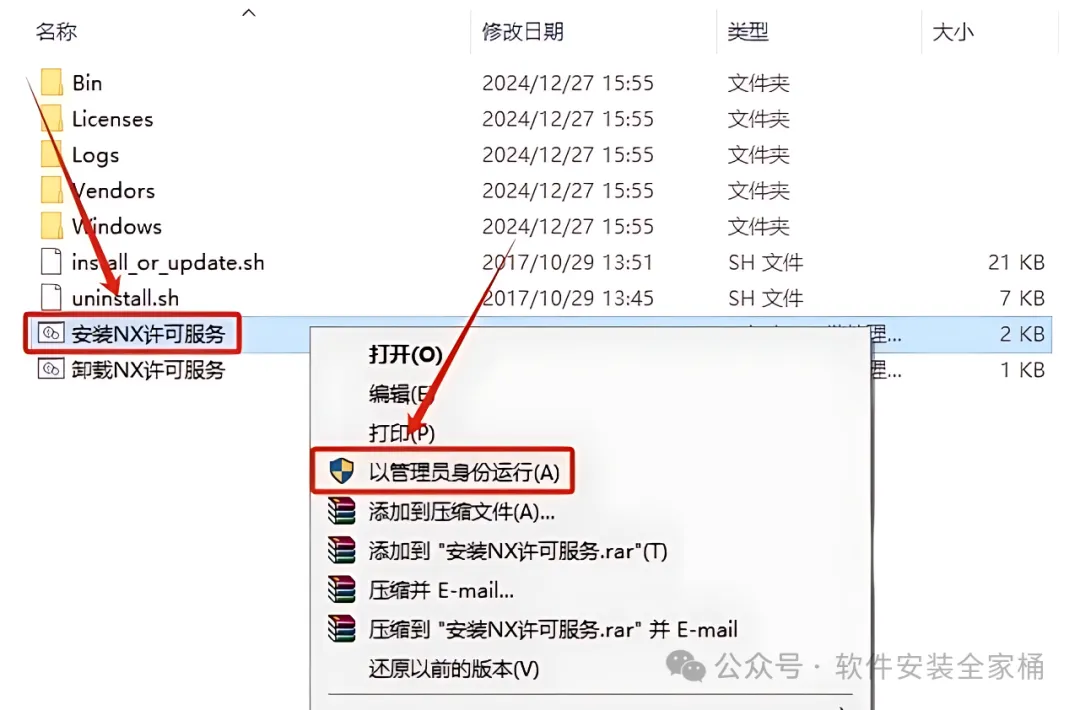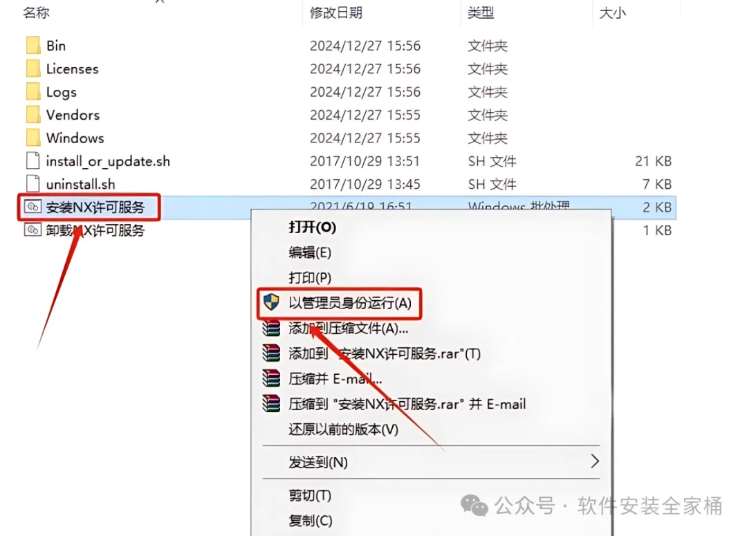 8.鼠标右击【安装NX许可服务】选择【以管理员身份运行】。