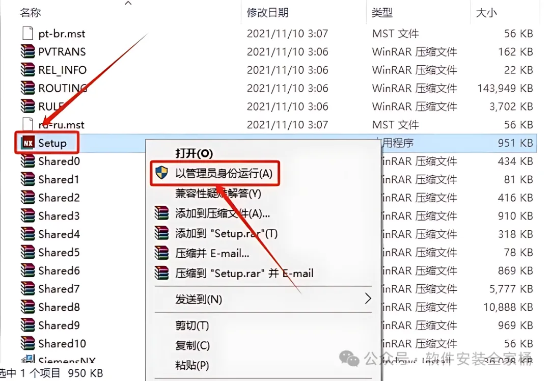 13.鼠标右击【Setup】安装程序,选择【以管理员身份运行】。