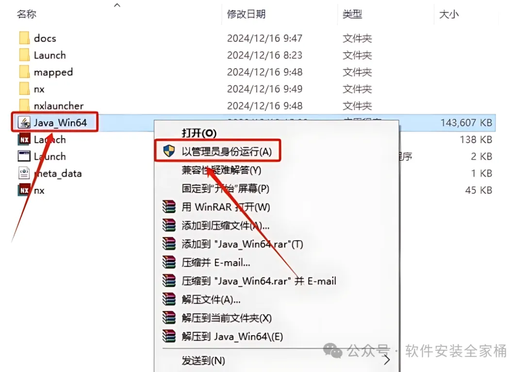 4.鼠标右击【Java_Win64】,选择【以管理员身份运行】。
