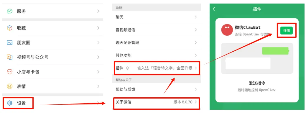 更新完成后,关闭微信再重新打开,找到“插件”一栏,就能看到“微信ClawBot”了。