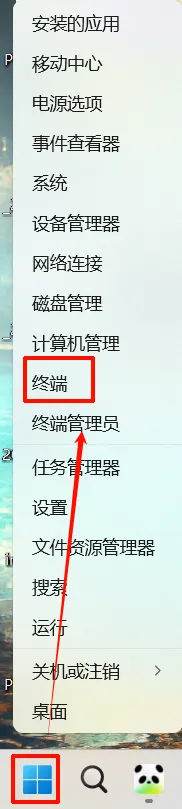 在弹出的菜单中选择 “终端”(有些系统叫 Windows Terminal 或 PowerShell)。