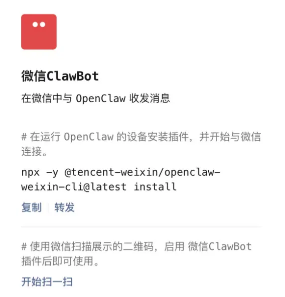 找到微信安装ClawBot的命令