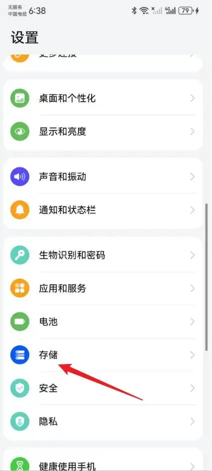 1、打开华为手机后,进入到设置页面,点击“存储”。