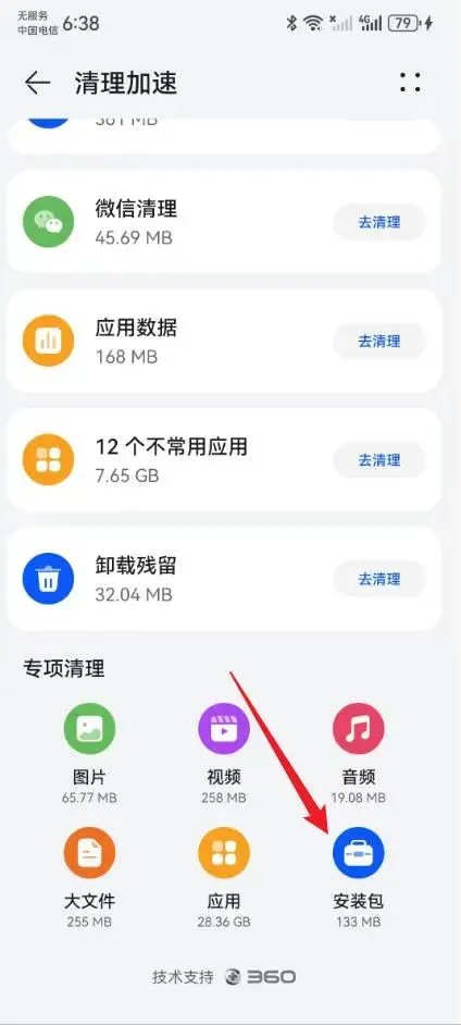 3、进入到清理加速页面,点击“安装包”。