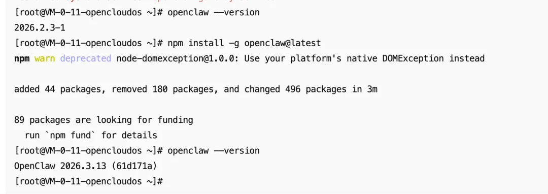 更新openclaw版本: