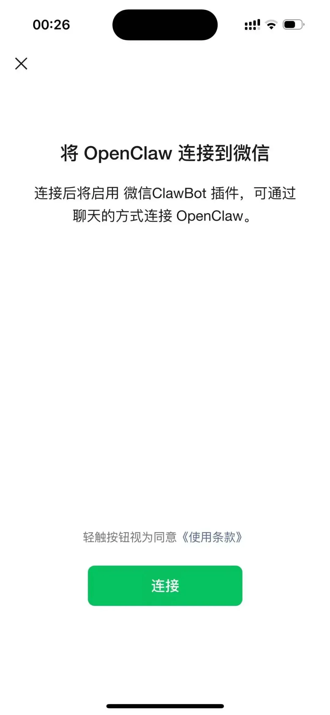 手机端会跳出【将 OpenClaw 连接到微信】的授权页面,轻触“连接”。