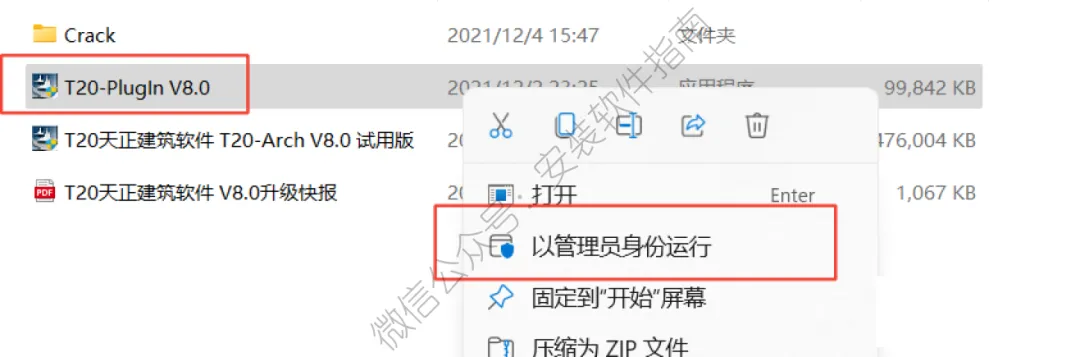 1、解压安装包:鼠标右击【天正T20V8.0建筑】压缩包(win11系统的用户需先点击“显示更多选项”)选择【解压到 天正T20V8.0建筑】。