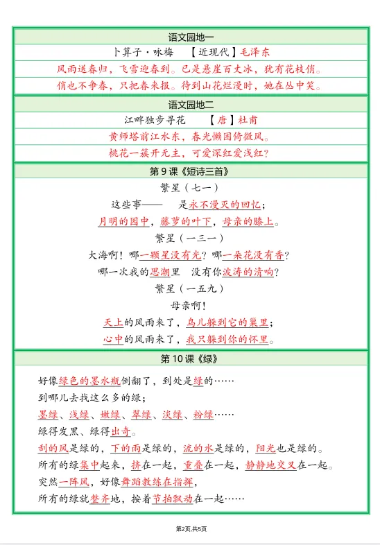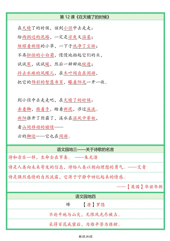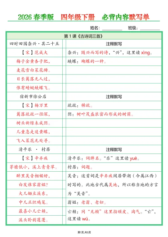 今天给大家准备好了!~四下语文必背内容默写单答案丨可下载打印