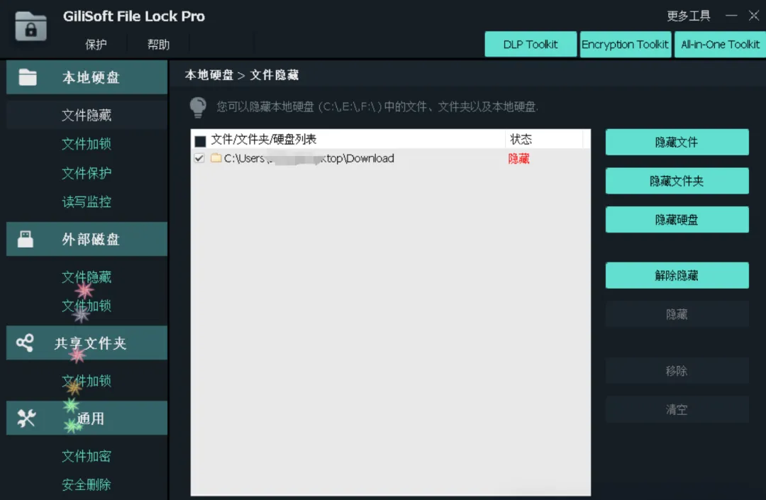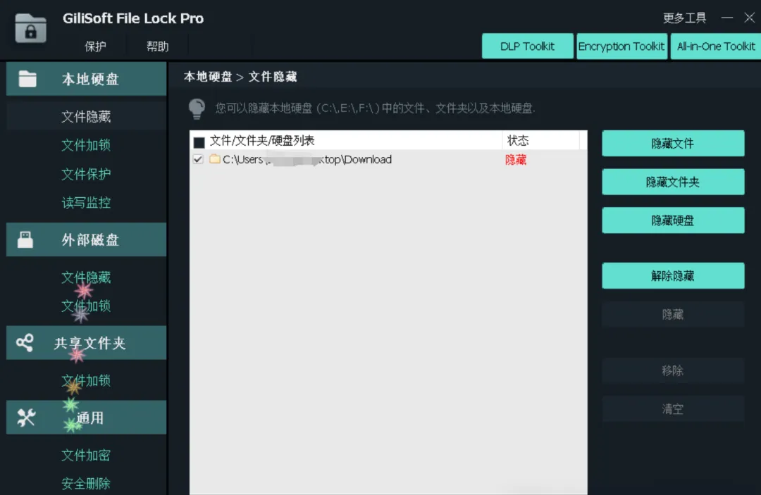 这类需求其实有个简单的解决办法,就是用文件保护工具把特定内容“藏”起来或加密。这里分享一个叫 GiliSoft File Lock Pro 的软件,主要功能就是保护电脑上的隐私数据。