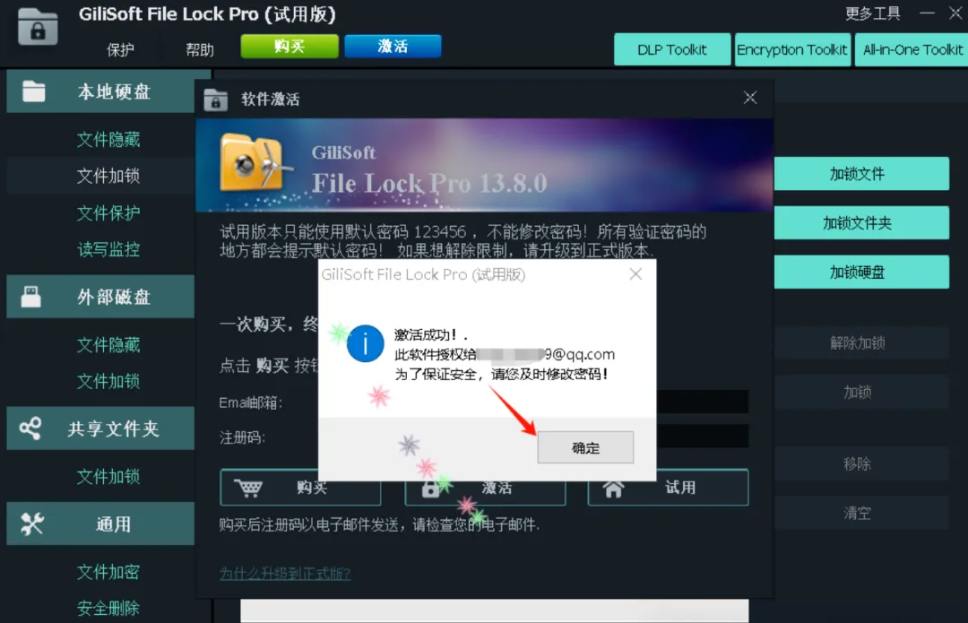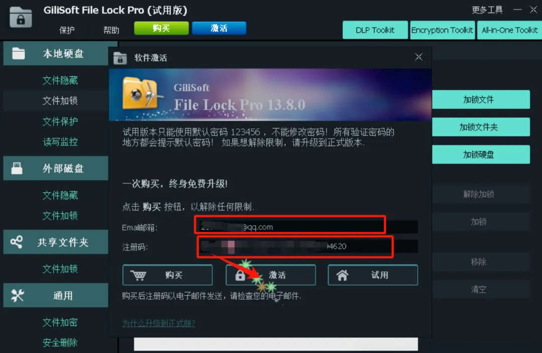 打开软件,在注册界面输入任意邮箱(格式正确即可),粘贴激活码完成激活。