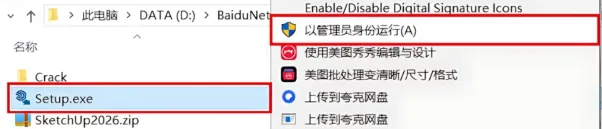 1、安装包下载到电脑本地,解压后打开找到【setup.exe】,鼠标右键【以管理员身份运行】
