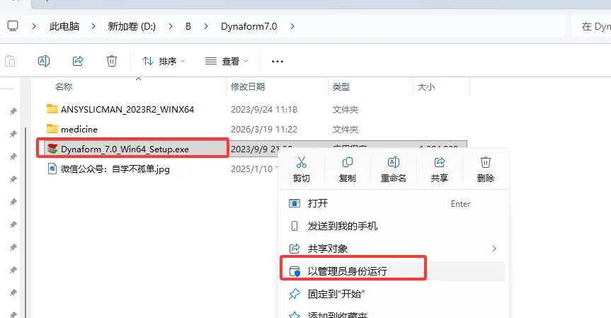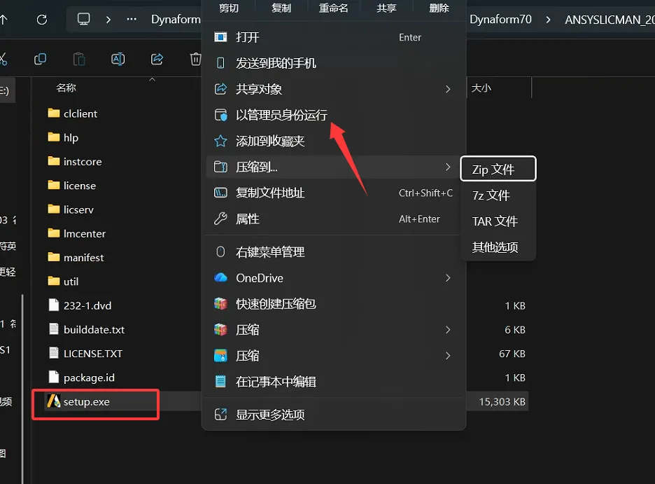 2、解压之后首先打开ANSYSLICMAN_2023R2文件夹,找到SETUP.exe右键以管理员身份运行。