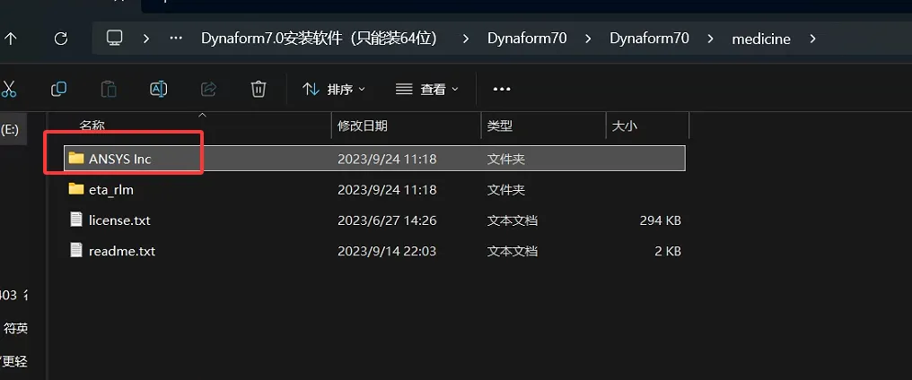 14、回到解压安装包,复制medicine文件夹下ANSYS Inc文件夹。