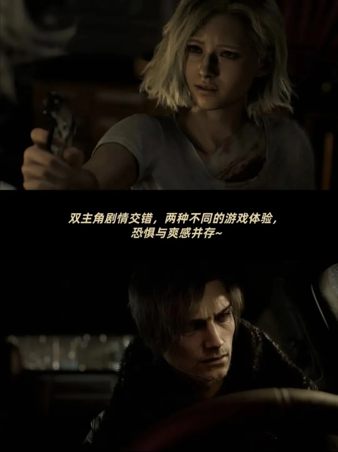经典角色里昂+雪莉,延续生4动作战斗风格,新增近战斧械与积分升级系统。