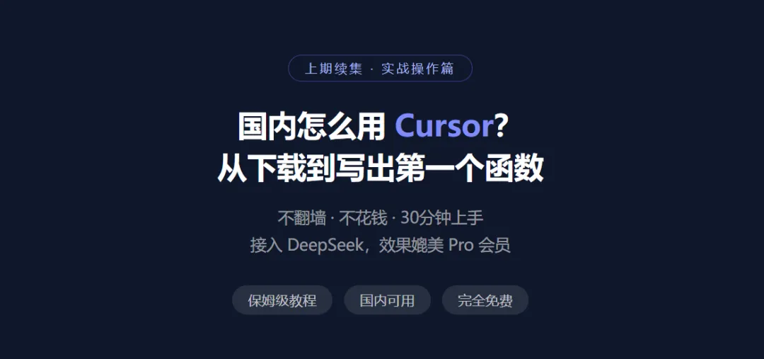 上一篇说了:今天就做一件事——打开 Cursor,用它写完第一个函数。好,那这篇就是那件事的完整执行手册。国内用户会碰到的坑,我都帮你踩过了。