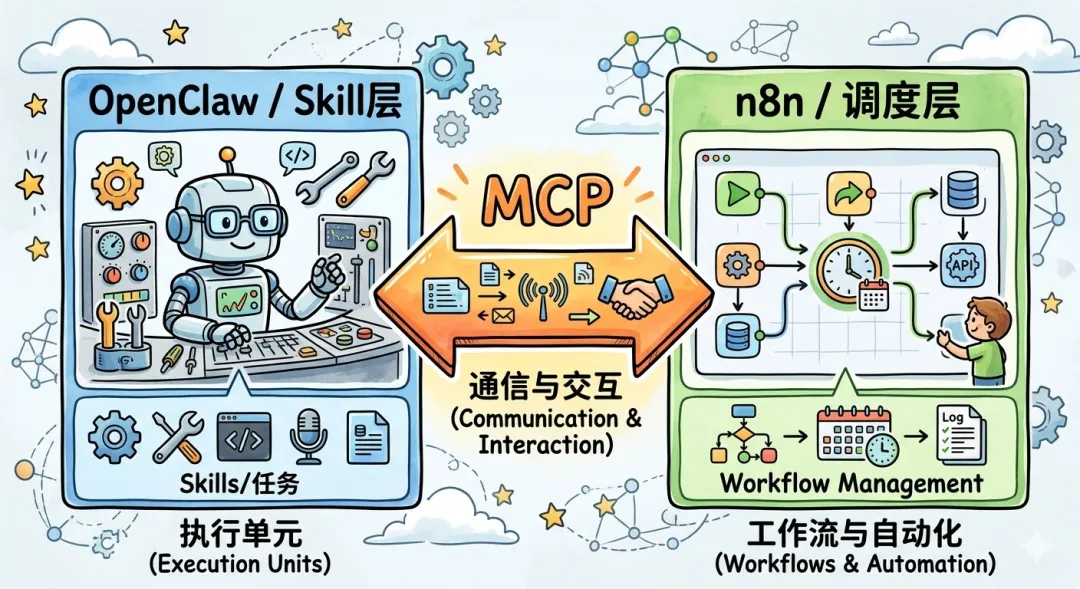 👉 OpenClaw负责"做事",👉 n8n负责"调度"。