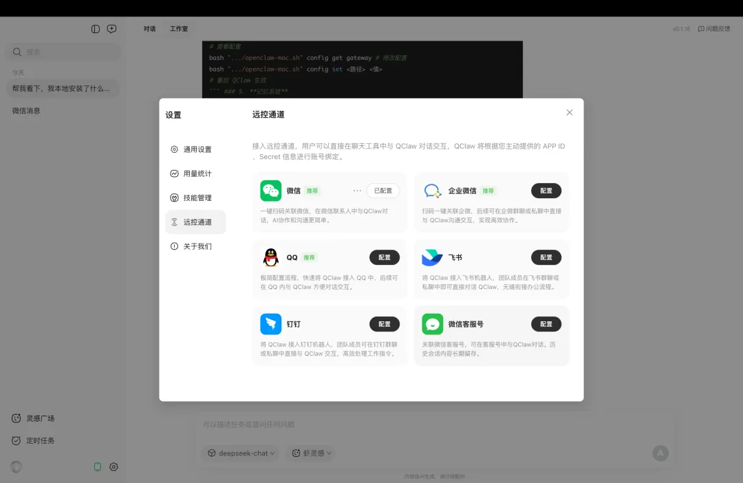 尽管QClaw是封装的Openclaw,但在配置文件,运行机制上还是有些不一样,包括技能的安装下载,Openclaw命令行的使用等等。下一篇介绍这两个东西的互操作,对于大部分人应该不需要理解。