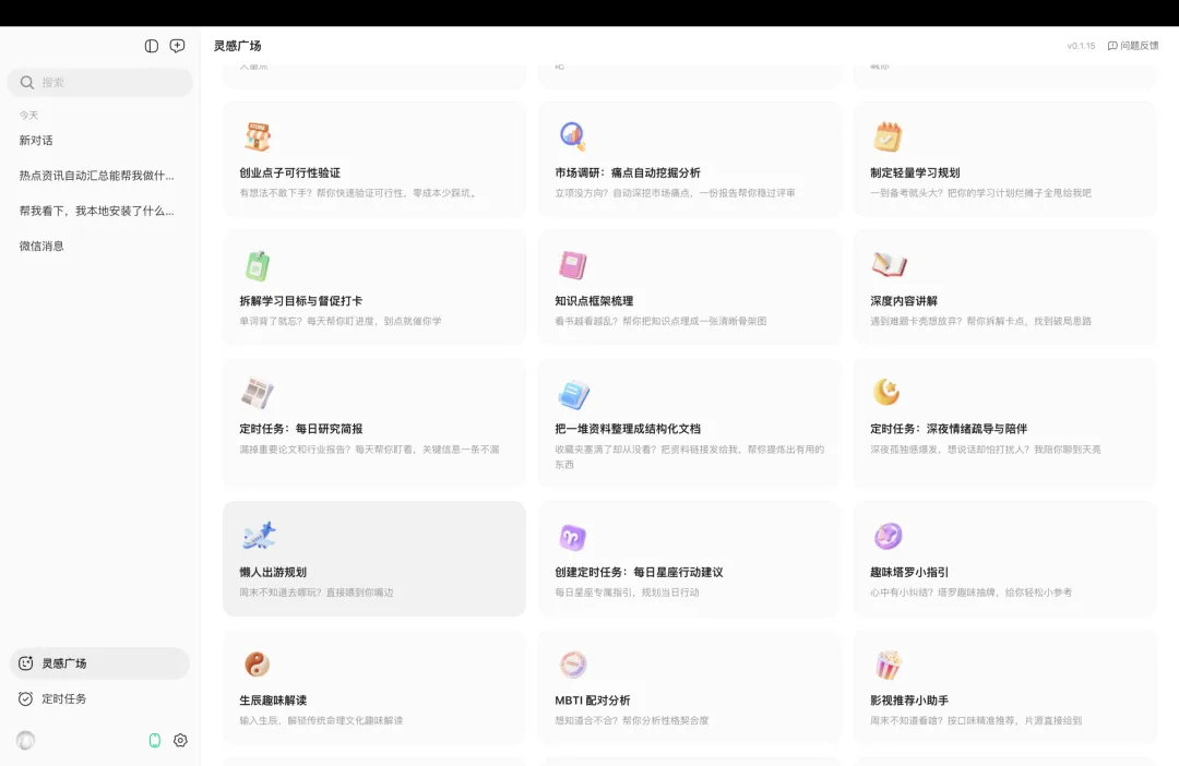 场景:看看大概都能做什么,别人都在做什么,点击左手面板里面的灵感广场