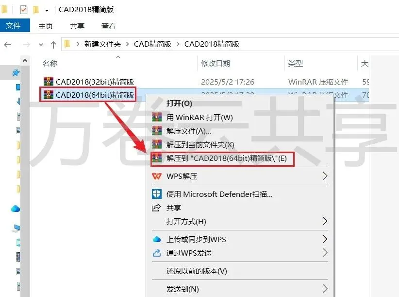 1.鼠标右击现在后的压缩包,选择→解压到AutoCAD2018精简版