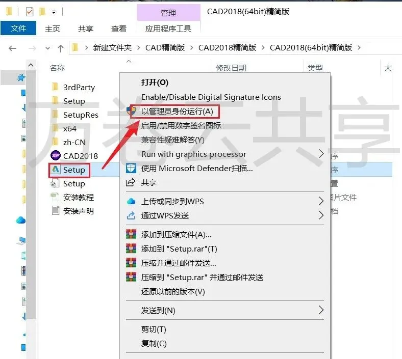 2.打开解压后的文件夹中,鼠标右击→Setup,选择→以管理员身份运行,