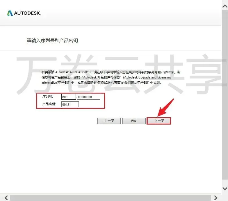 11.输入序列号→800-00000000,输入→产品密钥001J1