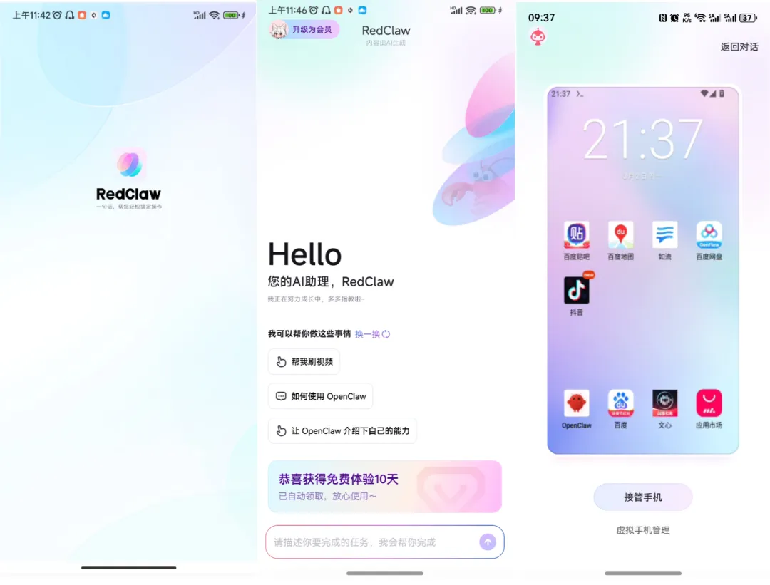 用RedClaw养虾:新用户直接领10天免费体验。10天后,即使开始付费,你支付的也仅仅是一台云手机费用,而最烧钱的模型调用成本,已经被百度智能云的底层架构消化掉了。