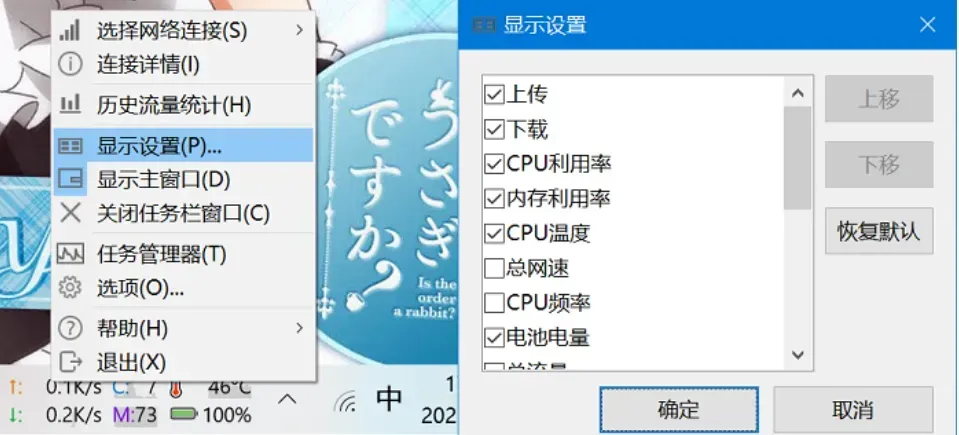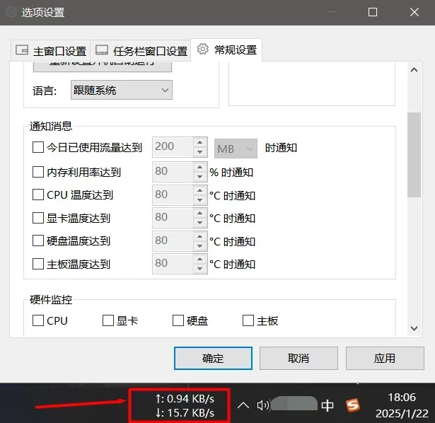 TrafficMonitor 的功能很纯粹:实时显示网速、CPU 占用、内存占用。