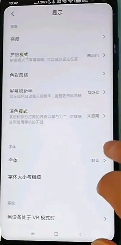 2. 小米设置界面:「设置 → 显示 → 字体大小与粗细」