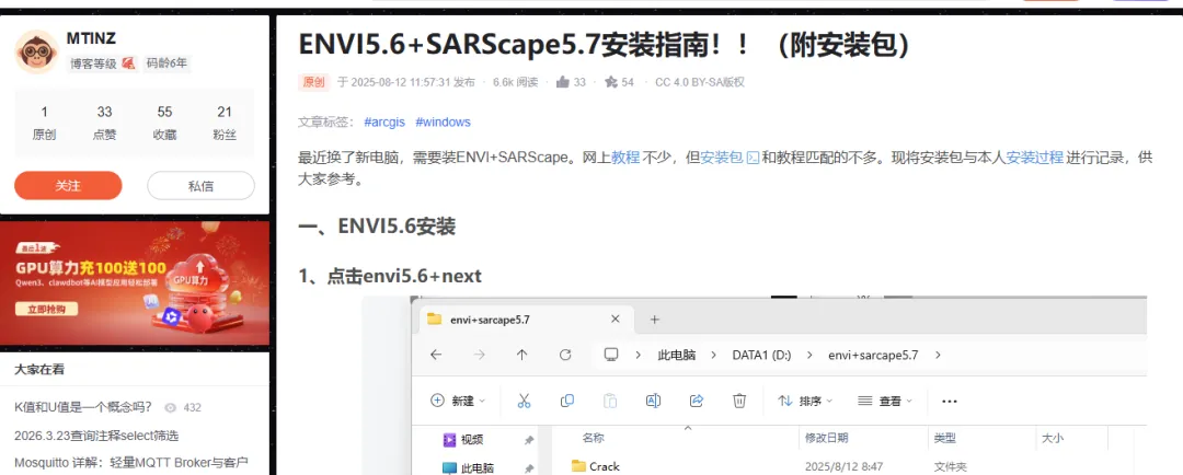 注意:只安装ENVI5.6就行,SARScape5.7处理陆探卫星影像会有问题。