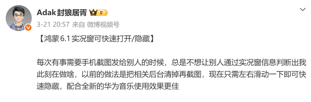 鸿蒙系统更新提速,6.1版本细节流出:博主爆料,HarmonyOS 6.1将新增实况窗快捷操作,左右滑动即可唤醒隐藏功能。针对网友关心的PC端应用音量单独调节功能下放问题,博主明确表示暂无相关计划。此外,开源鸿蒙OpenHarmony 6.1 Release已正式发布,计划6月30日前推出LTS版本,HarmonyOS 6.0.0.328花粉beta版也已开启升级。