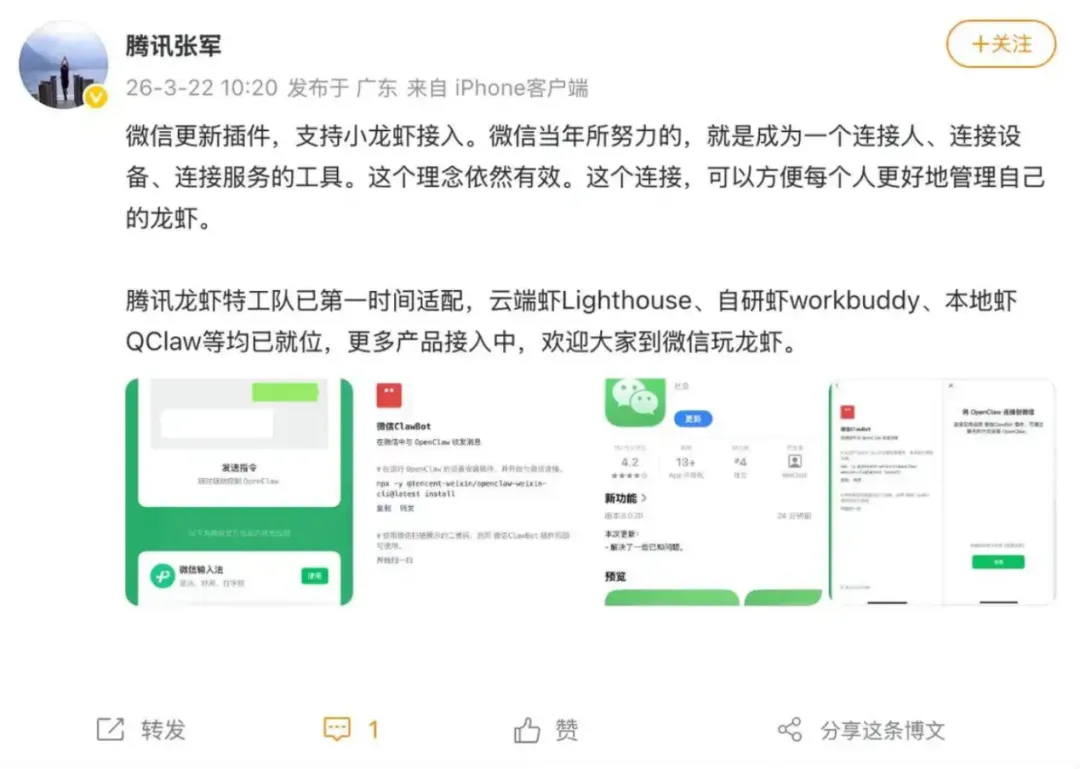微信迎来版本更新,iOS端8.0.70版本新增OpenClaw插件支持,用户可在设置中绑定参数,通过微信直接与OpenClaw对话操作。目前安卓端仍停留在8.0.69版本,鸿蒙端暂未适配,期待后续更新。